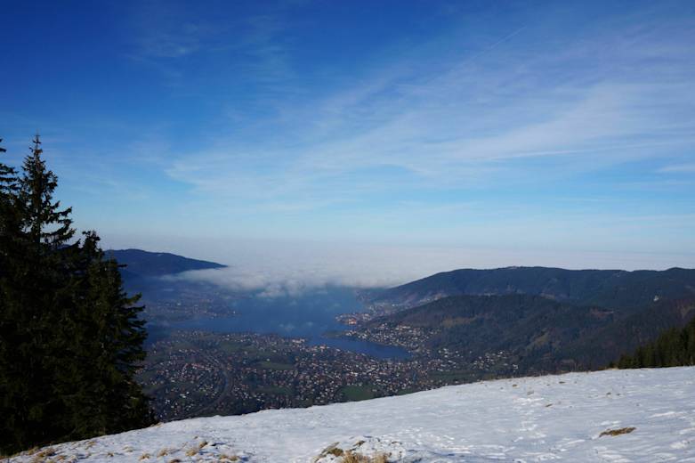Er thront am Südufer des Sees, direkt hinter der Ortschaft Rottach-Egern. Und wenn man das Wort Hausberg verwenden möchte, dann trifft es für die Einwohner wirklich zu. Wer die 930 Höhenmeter zum Gipfel scheut, der kann die Wallbergbahn nehmen oder zumindest eine Strecke kombinieren. Die gesamte Wanderung in den Bayrischen Voralpen dauert fast fünf Stunden.