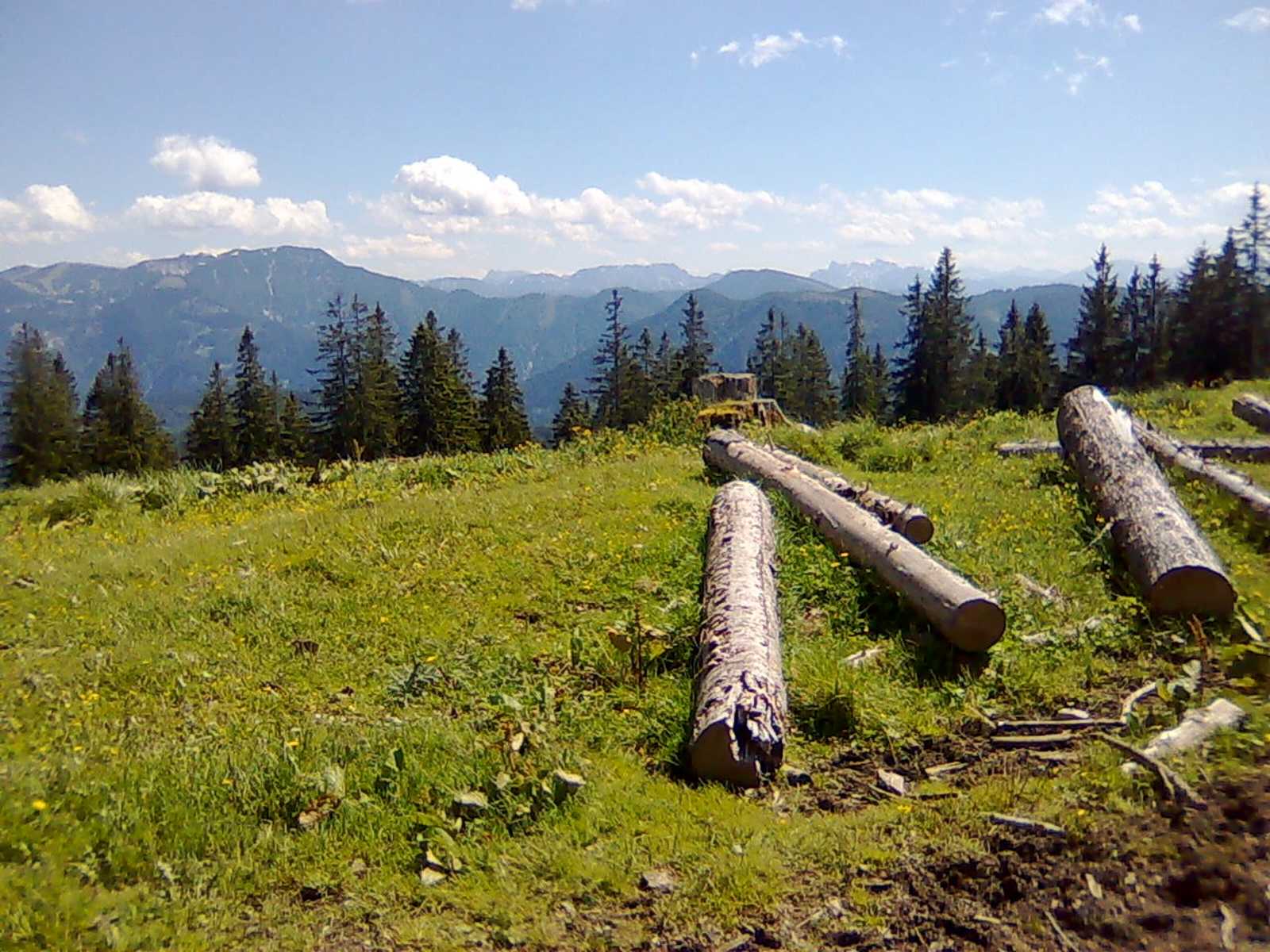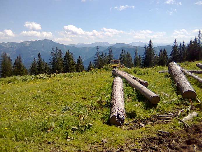 Weiter folgen wir der vertrauten blau-gelben Markierung über Ebnerbrand zur bewirtschafteten Alm Siebenhütten, wo angesichts der fantastischen Aussicht eine zünftige Jause sowie kühle Getränke zum Verweilen einladen. Im Wesentlichen ist der Großteil des Gesamtanstieges dieser Tagesetappe bereits fast geschafft. Nun führt uns der Almwiesenweg in südwestlicher Richtung über die Schlageralm, die Jagdhütte Vierhütten und die unbewirtschaftete Kitzhütte.