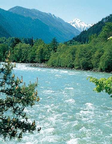 Ziel dieser Etappe ist der autofreie Ort Pfelders mit Ausblick auf die umliegenen Gipfel der Ötztaler Alpen in Südtirol.