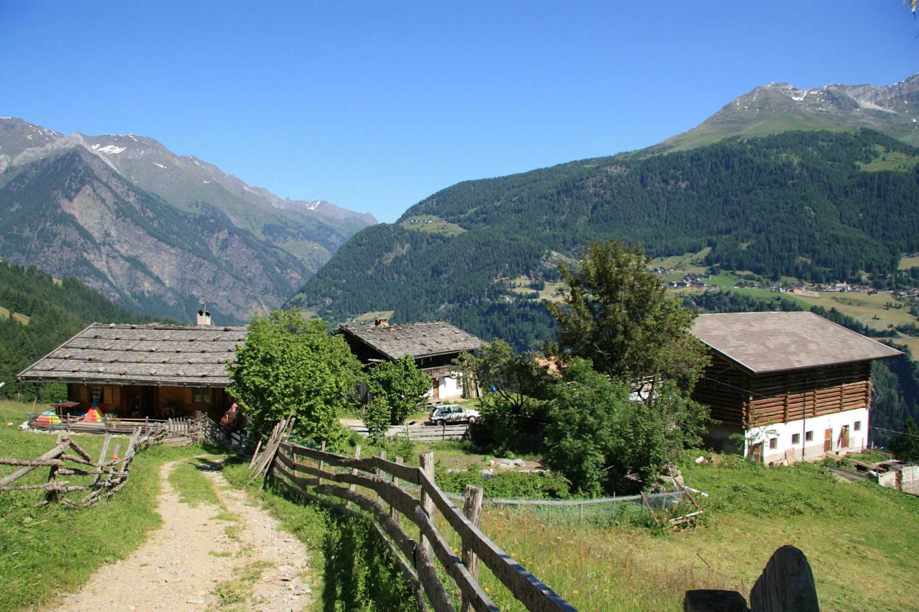 Am Dorfeingang vom verkehrsberuhigten Dorf Pfelders