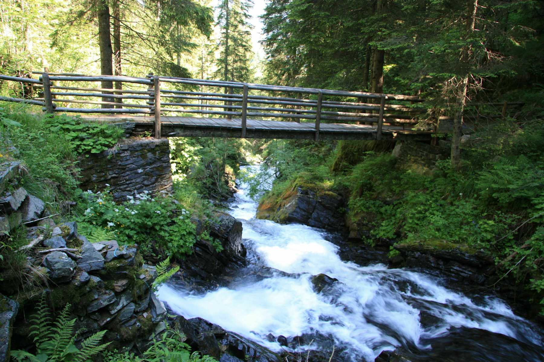 Hier befindet man sich an einer markanten Stelle des Meraner Höhenweges: Am Krössbichl überquert man die famose Brücke, die den südlichen und nördlichen Teil des Meraner Höhenweges verbindet. Der Weg führt weiter bis nach Sefnar (1.448 m) und anschließend weiter nach Außerhütt (1.457 m). Auch wenn man hier öfters auf asphaltierten Wegen wandert, ist das nicht so störend, da der Autoverkehr sehr überschaubar ist. Der Weg, der nach wie vor mit der Nummer 24 markiert ist, führt nun in den Naturpark Texelgruppe.