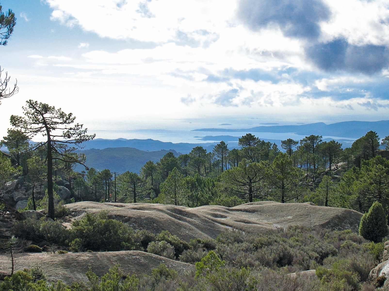 Noch einmal muss man etwas aufsteigen, auf 630 m Höhe. Man wandert dann am Hang unterhalb des nach Südosten ziehenden Kammes wieder durch ein Gebiet, in dem früher ein schöner Pinienwald stand. Feuer hat diesen zerstört und nur noch einzelne Bäume ragen aus dem Gestrüpp empor. Nach etwas mehr als 2 km (ab Querung des Baches) auf einem komfortablen Pfad erreicht man die Bocca d’Usciolu (587 m), die letzte Bresche, die man durchschreitet. Nach der Durchquerung sieht man das Ziel unter sich liegen: Conca! Ein Ortsteil nennt sich „Radicale“ – so könnte man auch die Korsika Tour über den GR 20 nennen.