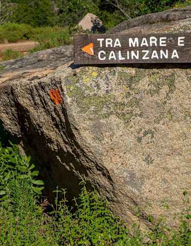 Der teils tief ausgewaschene Pfad führt durch die Macchia, auf dem Höhenrücken, anfangs Richtung Südosten, dann Osten, auf die höchste Erhebung dieser Gegend, die Punta Cozzanicciu (1.059 m), zu. Auf 740 m führen die orangen Markierungen weg vom alten Hirtenpfad nach Süden, nun etwas steiler aufwärts, bis auf 932 m.