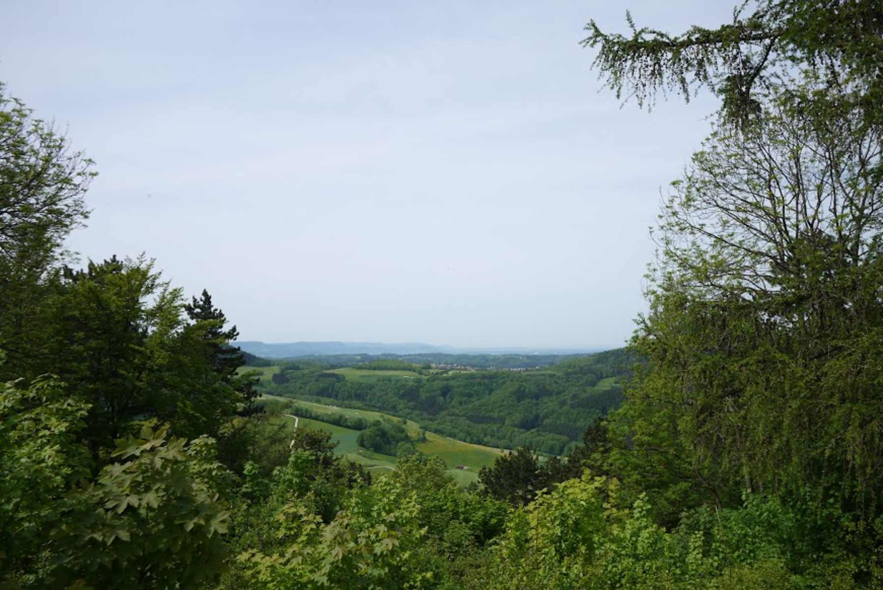 Am Albtrauf führt mich der schmale Weg am Waldrand entlang. Links von mir sind wellige Wiesen und Felder. Rechts geht es steil durch den Wald ins Filstal hinab. Ich erreiche die Burgruine Bühringen. Auf einem Felssporn oberhalb vom Rötelbach lag diese Festung. Auch hier zeigt sich, wie gerne die Schwaben bauen: Wann genau die Grafen von Helfenstein hier mit den Arbeiten begannen ist unklar. Experten gehen davon aus, dass etwa im Jahr 1250 die Burg fertig gewesen ist. Wer meint, dass unsaubere Immobiliengeschäfte nur in unserer Zeit vorkommen der irrt sich. Wie so oft im Mittelalter, gab es bei der Festung am Albtrauf einen Eigentümerwechsel: Ab 1405 gehörte Burg Bühringen der Reichsstadt Ulm. 1525, als in Schwaben die Bauernkriege tobten, brannte die Festung ab. Entsprechend wenig ist von der Festung heute noch zu sehen. Selbst mit viel Fantasie lässt sich außer ein paar Gräben und überwucherten kleinen Mauerresten nichts mehr erkennen.