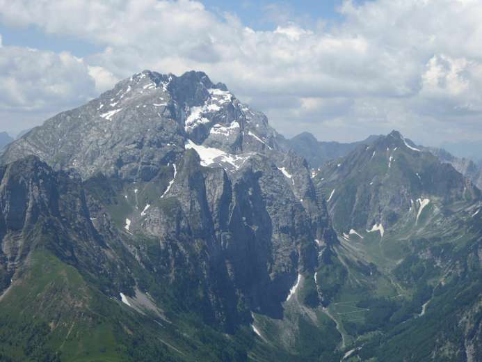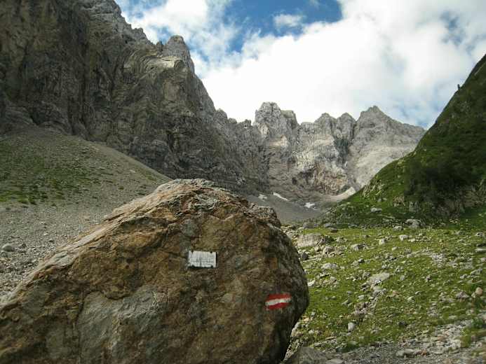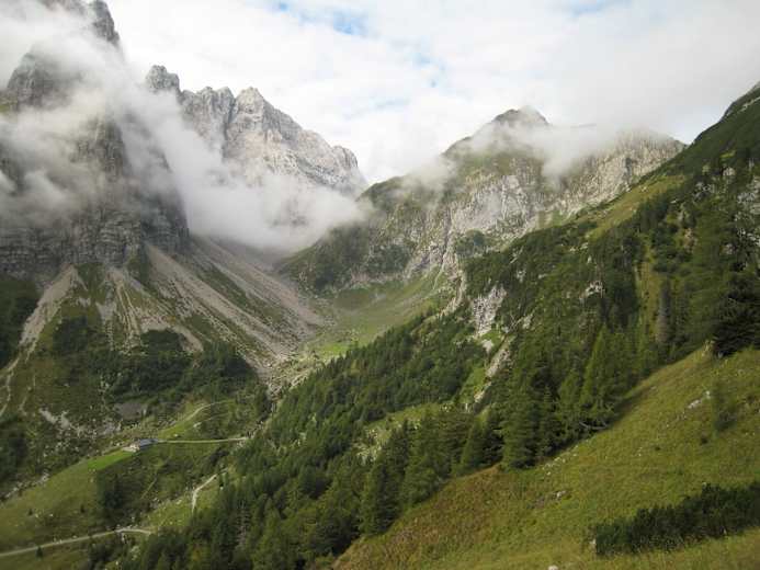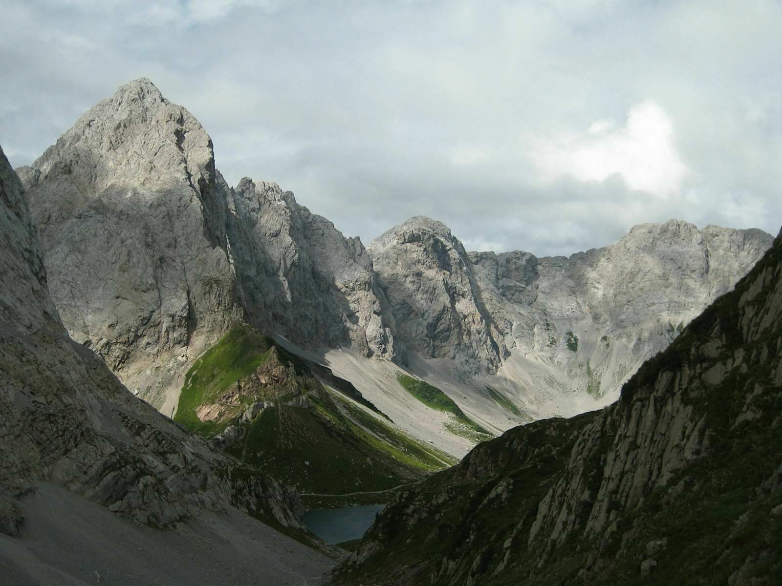 5. Etappe Karnischer Höhenweg: Von der Wolayersee Hütte (1.967 m) zur Zollnersee Hütte (1.738 m). Unter den hoch aufragenden Nordwänden von Seewarte und Hoher Warte geht es vom Wolayer See hinauf zum Valentintörl. Über das Valentintörl zur unteren Valentinalm am Plöckenhaus vorbei führt ein langer Anstieg zu den Köderköpfen. Der folgende Abstieg durchquert den Talschluss den Kronhofgrabens bis zur Zollnersee Hütte. Lohnende Bergwanderung durch großartige Gebirgslandschaft am Karnischen Hauptkamm.