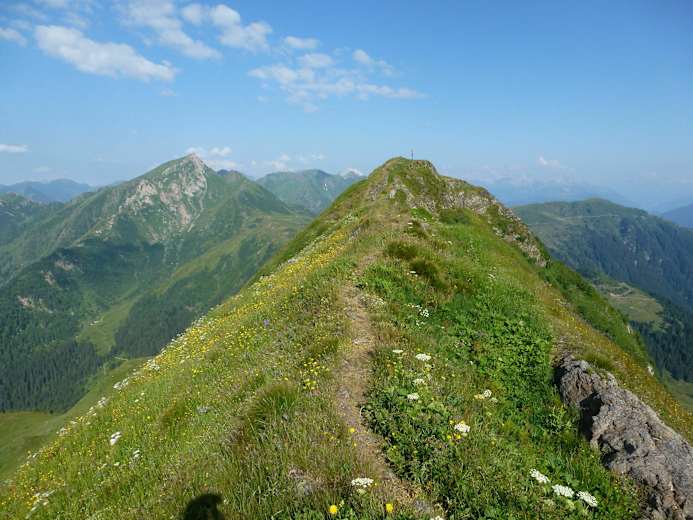 Als zusätzliche Gipfelmöglichkeit bietet sich gleich zu Beginn die Längsüberschreitung des Findenigkofels (2.016m) an. Bald nach dem Zollnersee zweigt der Weg Nr. 425 in Richtung Süden ab und folgt dann dem Grenzverlauf (leicht, 250Hm).