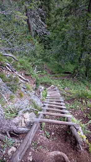 Startpunkt ist die Amlacher Waldschenke. Hier beginnt der liebevoll gepflegte Goggsteig, eine beliebte Trainigsstrecke der Indigenen. Über seine Wurzeln und Stufen geht es die ersten steilen 350 Hm hinauf zum Gogg-Hittl. Ab hier geht es erstmals flacher über den Franz Lerch Weg in Richtung Klamm Brückl. Was man als angenehm flache Traversierung wahrnimmt, ist für die Bergläufer klarerweise eine Vollgaszone. Diesen Gedanken im Kopf, setzt man nach der Brücke wechselweise auf Fahrweg und Steig bis zur Abzweigung ins Hallebachtal fort. Die nächsten ca. 900 hm geht es ununterbrochen steil nach oben. Zuerst durch extrem steilen Urwald und später über mühselige Schotterrinnen gelangt man in die Arena des Hallebachtals. Zur Rechten grüßt schon das silberne Gipfelkreuz doch das Zwischenziel heißt Kühbodentörl.