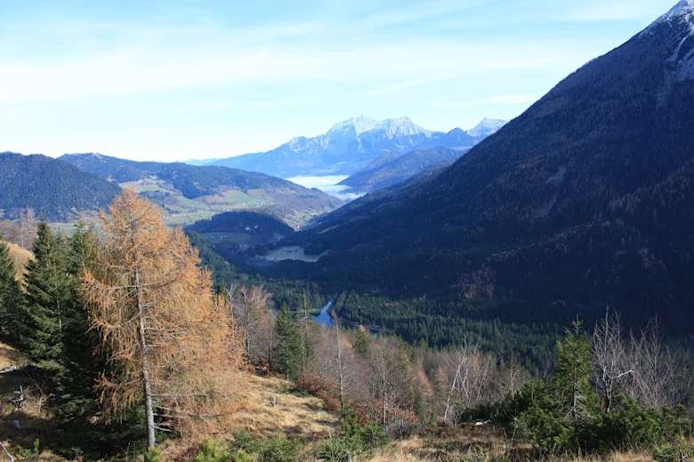 Die schöne Wanderung zur Halsalm (1.213 m) hat fast alles, was das Bergsteigerherz höher schlagen lässt: schmale Steige, einen tiefblauen See und liebliches Almgelände mit weiter Aussicht. Nur auf das Gipfelglück muss der Wanderer auf der Halsalm verzichten. Dafür wird ihm eventuell ein ganz anderes, seltenes Naturerlebnis geboten: Mit viel Glück kann er dem König der Lüfte dabei zusehen, wie er seine typischen Kreise über sein Revier, das Klausbachtal, zieht. Eine nicht allzuschwierige aber schöne Wanderung in den Berchtesgadener Alpen in Bayern.