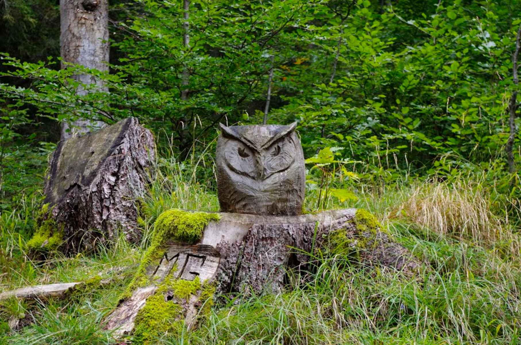 Vom Parkplatz Hochschwarzeck aus überquert man die Straße und wandert gegenüber die Straße „Am Gseng“ bergauf. Beim Fronwieshof führt der Weg rechts zwischen zwei Bauernhöfen hindurch. Man folgt dem Forstweg bergauf, passiert die deutlich sichtbare Skipiste Richtung Waldrand, am oberen Ende der Piste begibt man sich auf den rechten Weg, der steil in den Wald hineinführt. An einer Gabelung geht man rechts weiter (Weg Nr. 75, Richtung Schmuckensteinrunde). Am Wegesrand sind immer wieder aus Holz geschnitzte Figuren zu sehen. An der nächsten Kreuzung biegt man wieder rechts ab. Der steile Steig wandelt sich in einen Waldweg, der allmählich abflacht. Eine Aussichtsbank lädt hier zur ersten Pause ein, weiter geht es immer gemütlich am Hang entlang über einen schmalen Pfad.