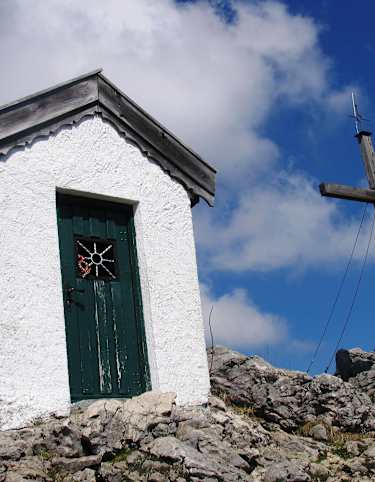Auf einer Kuppe geht es links in wenigen Minuten zum lohnenswerten Gipfel und zur Bezoldhütte, die nicht bewirtschaftet ist. Hier sind mehrere Aussichtsbänke aufgestellt. Man wandert die wenigen Meter zurück und dann weiter auf der freien Kuppe Richtung Söldenköpfl (Weg Nr. 68). Links passiert man eine Messstation des bayerischen Lawinenwarndienstes.