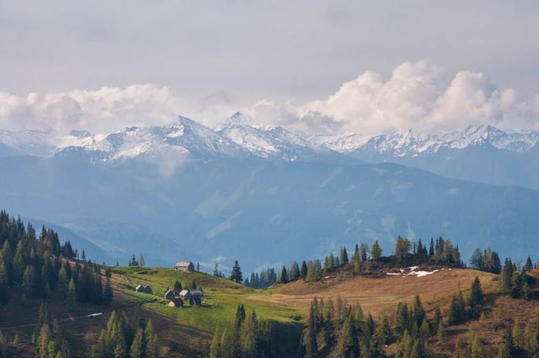 Blick vom Grazersteig aus zur Schneehitz Alm, dahinter die Gipfel der Wölzer Tauern. Foto: Rene Sendlhofer