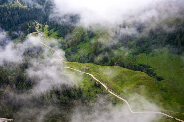 Nach kurzem Marsch scharf rechts bergab in die nächste Forststraße einbiegen und dem Verlauf bis zur Rechtskehre folgen. Hier beginnt ein kleiner und unscheinbarer Steig, der durch den Wald und dichtes Gestrüpp bergab führt. Am Ende des Dickichts, mitten im Wald, dem Weg zur Abbruchkante folgen und linkerhand einen traumhaften Aussichtsplatz vorfinden, das Mössnbankerl. Unten im Tal sieht man Weissenbach bei Liezen, den Ausgangspunkt der Tour.
