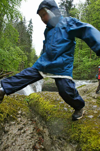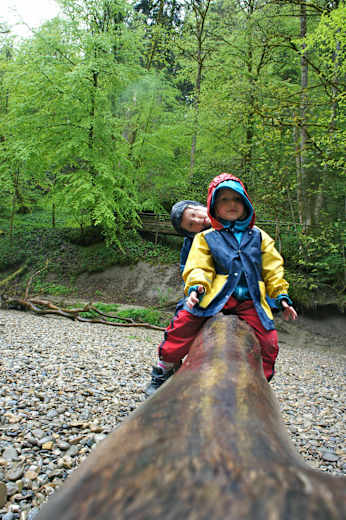 Vom Wanderweg aus ist die Ohe immer wieder erreichbar. Da kann kein Kind widerstehen. Die Kleinen bauen Dämme, schnitzen kleine Rindenschiffe und lassen sie auf der Ohe Regatten fahren.