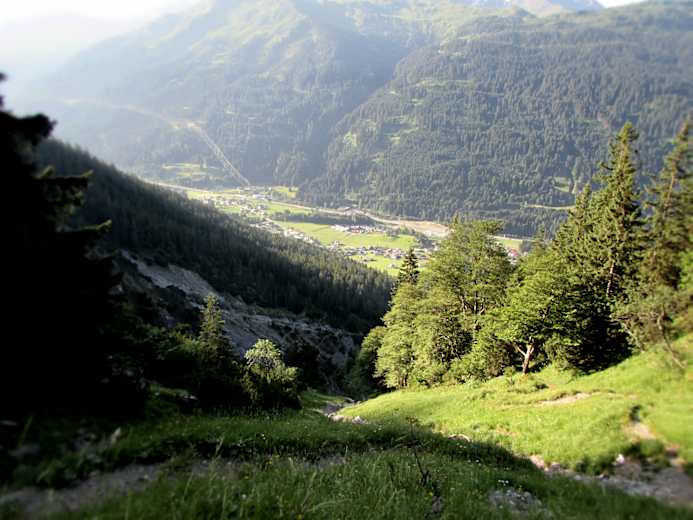 Die Tour startet im Dorfzentrum von Wald am Arlberg (ca. 980 m) und führt sofort bergauf zu einer Unterführung unter die Arlbergbahn. Wir folgen der Beschilderung „Glong“, so der Name einer Alplandschaft oberhalb des Glongtobel, den wir als erstes durchsteigen müssen. Die Weganlage ist recht direkt und steil, also sollte man es ruhig etwas gemächlich angehen, bevor man schon auf den ersten Kilometern sein Pulver verschießt.