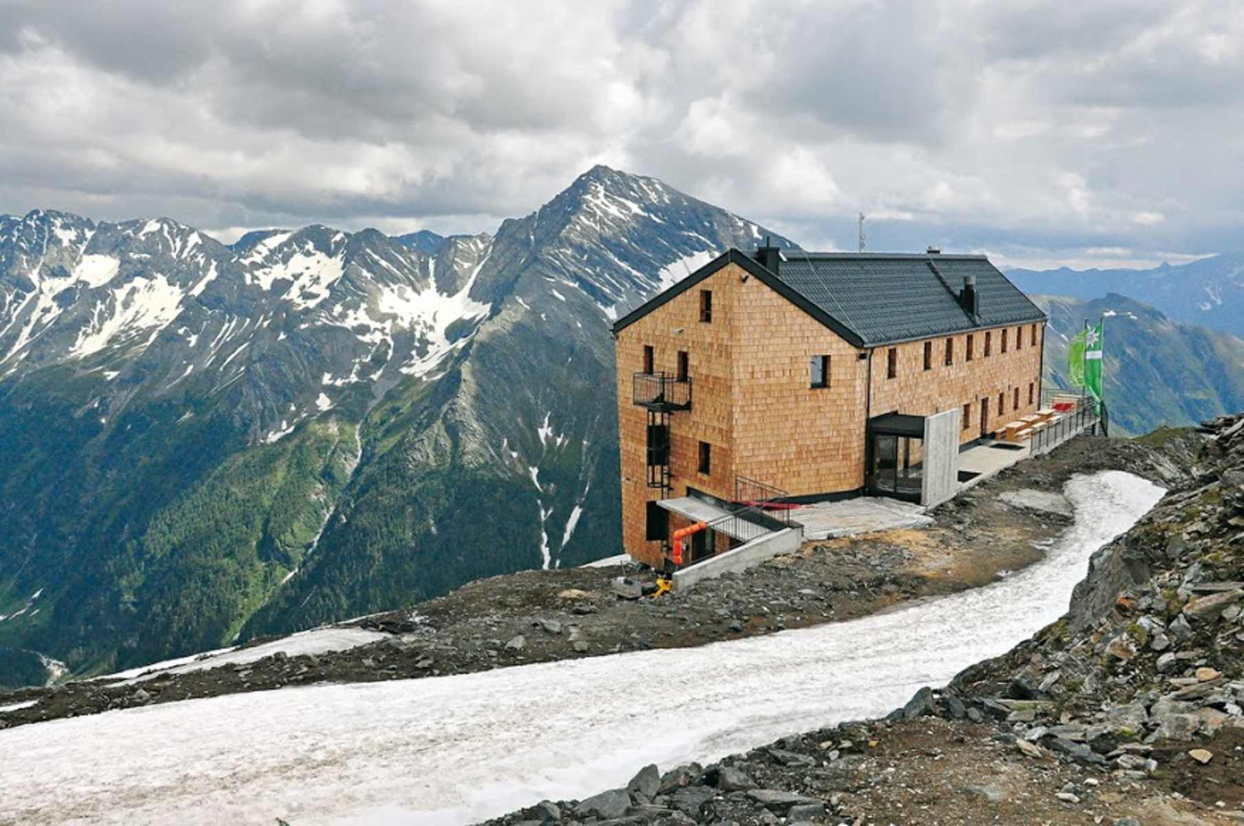 1) Vom Kamm des Etschlsattels genießen wir einen herrlichen Rundblick auf weite Teile der Hohen Tauern. Hier blicken wir zur Maresenspitze (2916 m). Foto: Alexandra Kimmer 2) Das neue Hannoverhaus ist mit aus der Ferne gut sichtbaren und noch hellen Lärchenschindeln verkleidet. Foto: Alexandra Kimmer 3) Das Mausoleum auf der Arnoldhöhe. Der Ausblick lohnt den Abstecher. Foto: Alexandra Kimmer Bildergalerie (3)