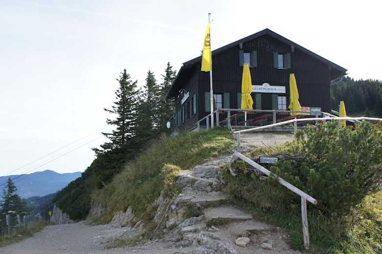 Wer den Kindern uns sich den Zustieg zum Tegelberghaus sparen will, gondelt mit der Tegelbergbahn zum Nachtquartier hinauf. Dier erste Möglichkeit elegant Kraft zu sparen. Ansonsten geht es links an der Sommerrodelbahn vorbei. Dem Wegweiser zur Rohrkopfhütte (1.000 m) folgen. Von dort geht es steil durch Schroffengelände. Hier sind feste Wanderschuhe, Trekkingstöcke und Trittsicherheit nötig. Oben am Tegelberghaus genießt man den Ausblick, wie ihn schon Maximilian II Joseph hatte. Der Monarch ließ diese Jagdhütte errichten.