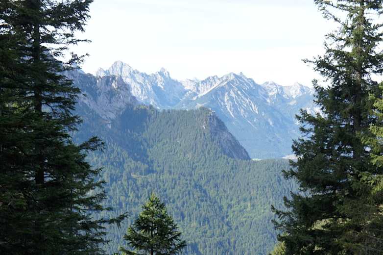 Nach dem die erste Etappe härter ausfiel, ist es am zweiten Tag ganz entspannt. Es fallen so gut wie keine Höhenmeter an. Hinter dem Tegelberghaus links den Schildern zur Bleckenau folgen. Zuerst führt der gut beschilderte Weg durch den Bergwald und mündet in den Reitweg. Zur Zeit von Maximilian Joseph II gab es keinen SUV für die adeligen Waidmänner. Deshalb ritten die Herrschaften zur Jagd. An dem breiten Weg, er führt stetig bergab, befindet sich ein Naturlehrpfad. Dort haben die Kinder an verschiedenen Mitmachstationen ihre Freude. Der Reitwegs endet an einer kleinen Teerstraße. Dort ist ein Tafel die links den Weg zum Berggasthof Bleckenau weist. Maximilian II Joseph, er ist der Vater von Ludwig II „Märchenkönig“ gewesen, ließ dieses Haus für seine Gattin Marie Friederike von Preußen errichten. Alternativ bietet sich vom DAV die Fritz Putz Hütte an, etwa 200 m vom Gasthof entfernt.