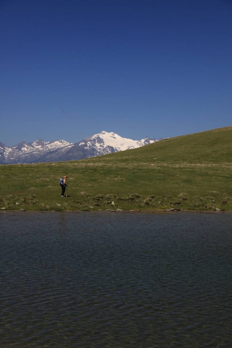 Vom Parkplatz gehen wir am Karlbad vorbei und unmittelbar danach links über die Brücke auf die gegenüberliegende Bachseite. Nun wandern wir am Bach entlang aufwärts, anfangs durch lichten Lärchenwald, dann über bunte Almwiesen, an blühenden Alpenrosen und wettergegerbten Zirben vorbei, bis zum weiten Sattel des Friesenhalses, 2075 m; hier mündet von Westen der Weg vom Parkplatz Eisentalalm ein. Nur wenige Meter abseits des Weges liegt der Friesenhalssee, 2.150 m, ein hübscher Rastplatz mit schönem Blick zur Hochalmspitze.