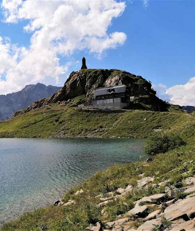 1) Geradeaus weiter und auf der Passstraße in ca. 30 Min. zum Kugydenkmal, wo wir einen herrlichen Blick zum Jalovec haben, und weiter auf direktem Weg hinunter zur Soča, über eine Hängebrücke und hinauf zur Straße nach Trenta.