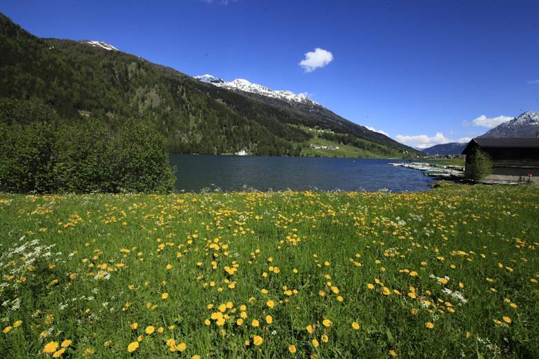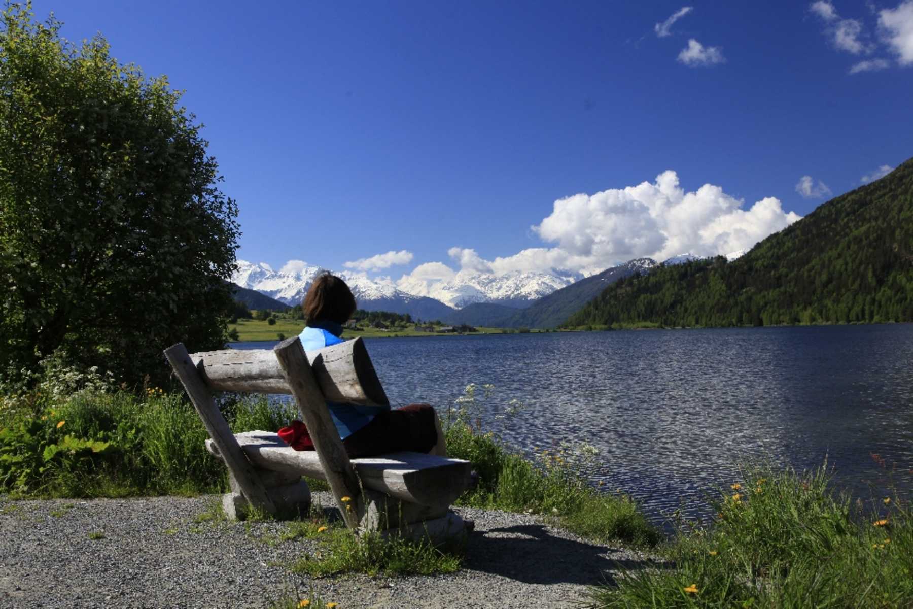 Ein blaues Juwel mit spektakulärem Ortlerblick: Einst gab es drei Seen südlich des Reschenpasses in Italien. Den Reschensee, den Mittersee und den Haidersee. Alte kleine Dörfer gruppierten sich um diese Seen in Südtirol, die von der Etsch, deren Quellen nur wenig nördlich des Reschensees liegen, gespeist wurden.