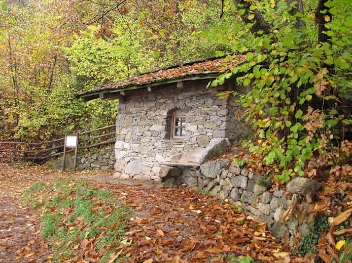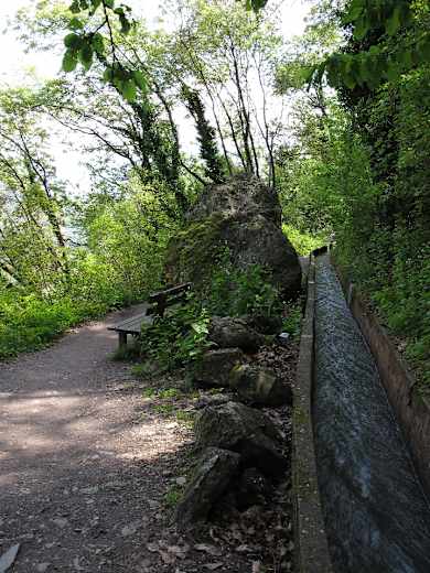 An der Leitenschenke kann man einen Abstecher zum Tauferer Badl machen, einer Mineralwasserquelle und ehemaligem Heilbad. Langsam nähert sich der Begleitweg seinem Ende, denn das letzte Stück des Waales durch die Obstgärten von Lana ist nicht mehr begehbar.