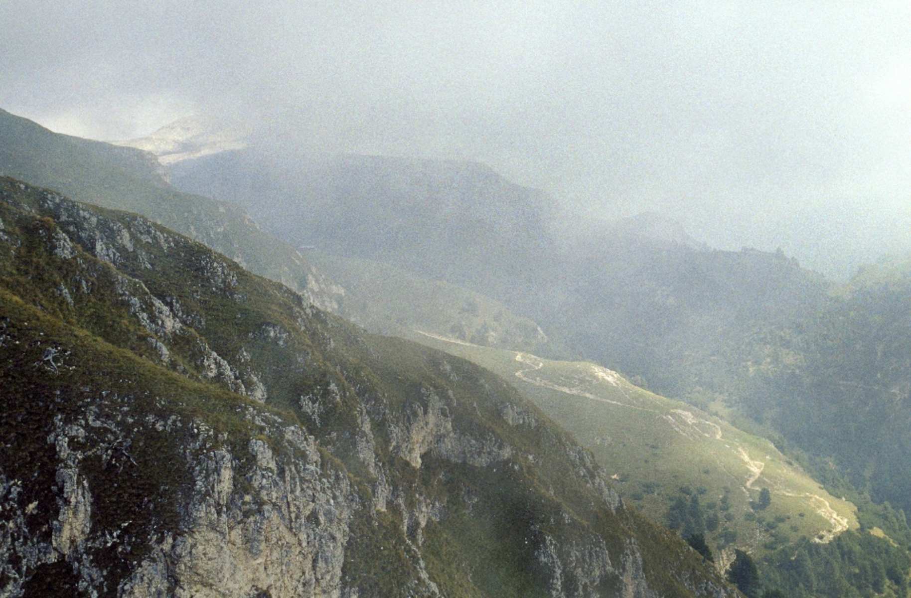 Für den weiteren Abstieg wählt man den Weg Nr. 1. Dieser führt von dem Unterkunftshaus nach Süden – zunächst leicht fallend übers Plateau, dann steiler hinab über eine Geländestufe.