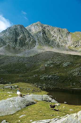 Über der Waldgrenze bleibt eine kleine Hütte links liegen. Bald darauf beschreibt der Weg einen Rechtsbogen und überwindet einige Felsrippen, an denen man schon mal die Hände gebrauchen kann.