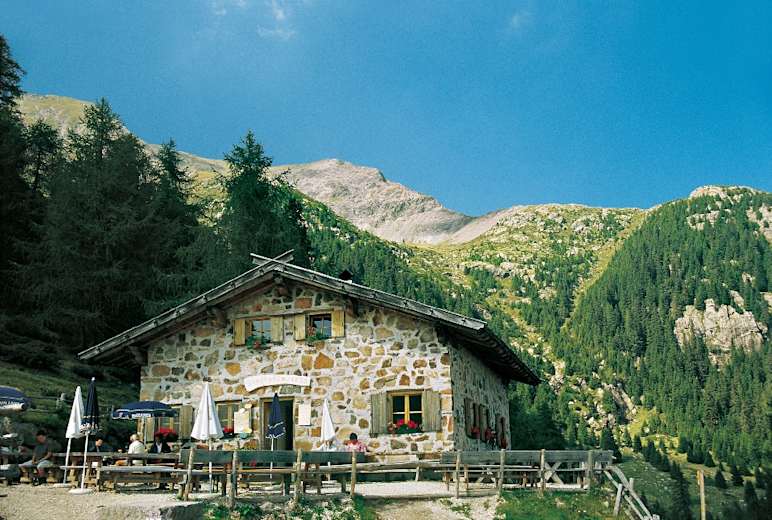 Zum Einkehren kann man die Laugenalm (1.853 m) oder den Gasthof Gampenpass (1.519 m) am Ausgangspunkt empfehlen.