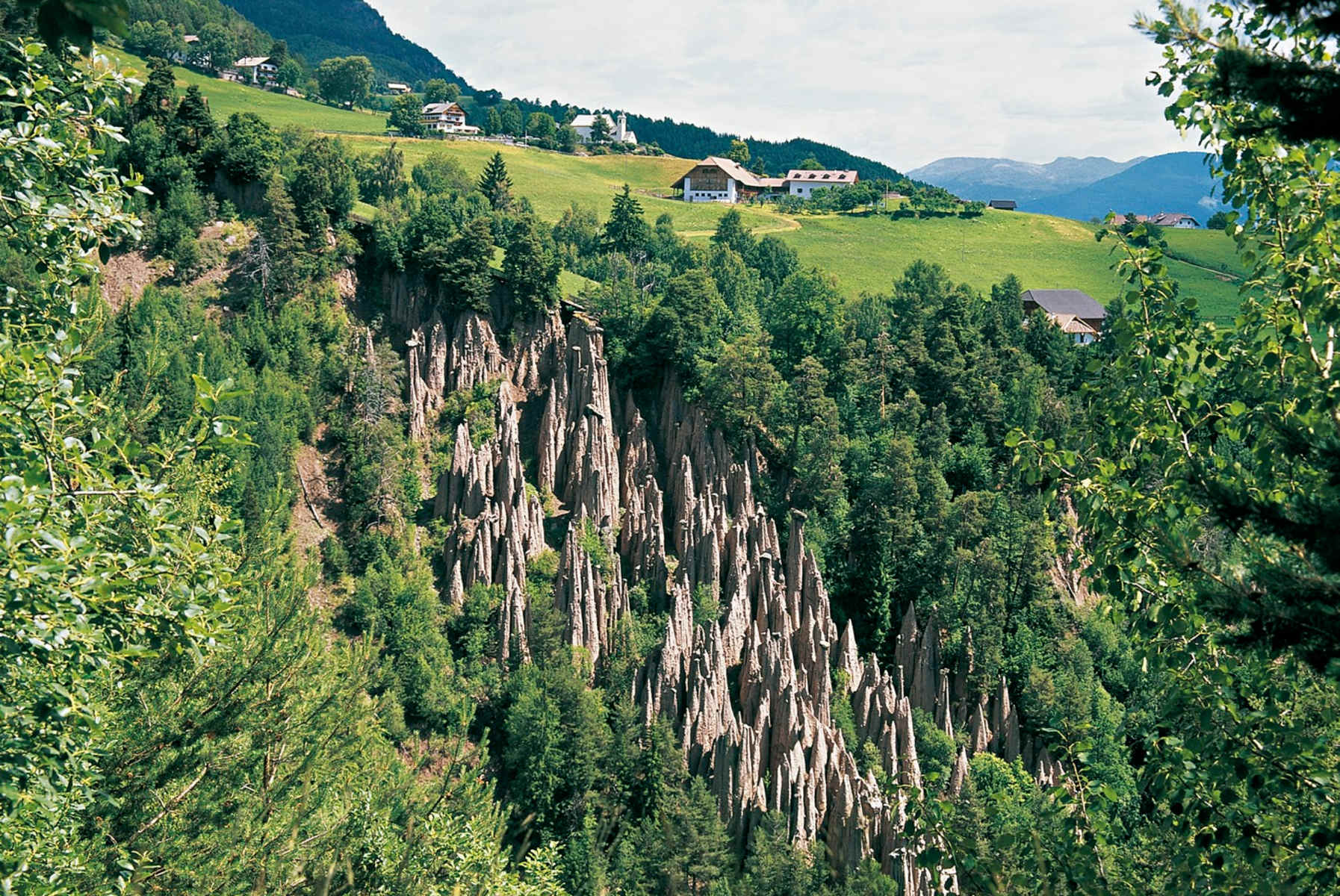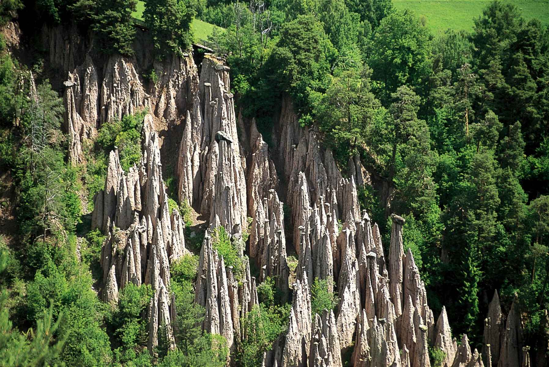 Die berühmten Erdpyramiden bestehen aus mächtigen Moränenablagerungen, die eiszeitliche Gletscher vor 20.000 Jahren im Graben des Finsterbachs abgelagert hatten. Das Geschiebe dieser Gletscher besteht aus sehr unterschiedlich großen Steinen, u. a. auch großen widerstandsfähigen Felsbrocken. Diese schützen das darunter lagernde feinere Material vor den prasselnden Regentropfen. So bleiben Säulen aus Moränenmaterial stehen, während die unmittelbare Umgebung tiefgreifend ausgeschwemmt wird. Dieser Prozess ist nicht abgeschlossen, zumal manche der Decksteine arge Wackelkandidaten sind …