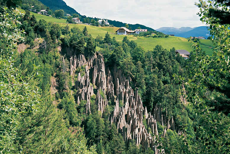 Die Erdpyramiden bei Klobenstein Foto: Helmut Dumler, Gerhard Hirtlreiter, Eugen E. Hüsler, Bergverlag Rother GmbH Der lauschige Biergarten des Gasthofs Amtmann neben einem kühlenden Weiher. Foto: Helmut Dumler, Gerhard Hirtlreiter, Eugen E. Hüsler, Bergverlag Rother GmbH Die letzten Meter zum aussichtsreichen Berggasthof Bad Siess. Foto: Helmut Dumler, Gerhard Hirtlreiter, Eugen E. Hüsler, Bergverlag Rother GmbH Blick nach Maria Saal – in Bildmitte die Kirche, links davon das Gasthaus. Foto: Helmut Dumler, Gerhard Hirtlreiter, Eugen E. Hüsler, Bergverlag Rother GmbH Spurrillen des alten Fahrweges Foto: Helmut Dumler, Gerhard Hirtlreiter, Eugen E. Hüsler, Bergverlag Rother GmbH Die berühmten Erdpyramiden bestehen aus mächtigen Moränenablagerungen, die eiszeitliche Gletscher vor 20.000 Jahren im Graben des Finsterbachs abgelagert hatten. Foto: Helmut Dumler, Gerhard Hirtlreiter, Eugen E. Hüsler, Bergverlag Rother GmbH Bildergalerie (6)