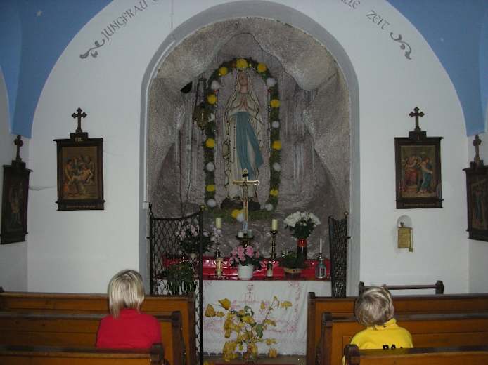 Am Nordrand des Parkplatzes rechts der Zufahrtsstraße folgen wir dem nach Osten führenden Weg, der uns über die Wiese leitet. Er mündet im Ort Seethal in eine Querstraße, der wir nach links folgen. Neben dem Haus Nr. 18 gehen rechts durchs Bett eines alten Deltaarms der Achen zu einer Marienkapelle; dort links. Beim Maibaum (von dort nach links auf Weg 01 Abstecher zum Sonnenhof möglich) halten wir uns rechts und passieren einige Bauernhöfe.