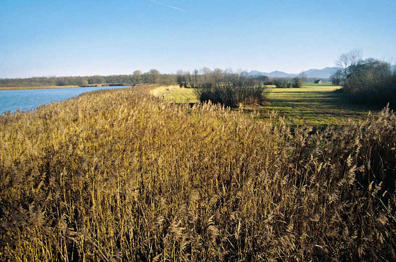 Das Schwemmland der Tiroler Achen – brettleben und wunderschön: Die Uraufnahme der bayerischen Landesvermessung 1807–1813 zeigt, dass ein Deltaarm der Tiroler Achen noch Anfang des 19. Jahrhunderts durch den heute trockenen westlichen Teil des Achendeltas floss und nahe der heutigen Nikolauskapelle mündete. Dort wandern wir durch das Wiesenbrütergebiet Lachsgang, in dem unter anderem Großer Brachvogel, Braunkehlchen, Bekassine, Wachtelkönig und Kiebitz vorkommen.
