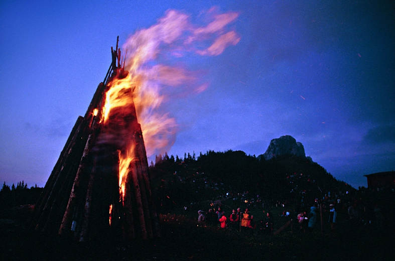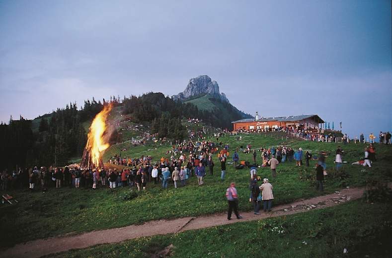 Sonnwendfeuer bei der Bergstation der Seilbahn. Foto: Gerhard Hirtlreiter, Rother Bergverlag