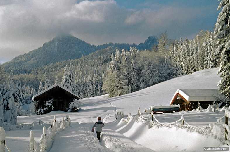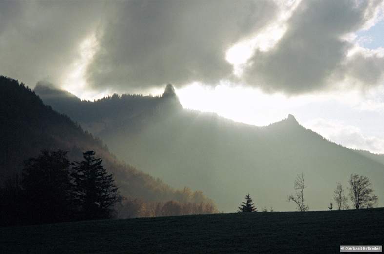 Ein abenteuerlicher Felskamm und gemütliche Almen im Chiemgau in Bayern: Der nordwestliche Eckpfeiler der Chiemgauer Alpen ist der Heuberg, gesprochen „Heiberg“. Das „Hei“ ist in diesem Fall übrigens nicht das bairische Wort für „Heu“, sondern ist von „geheiter“ (verbotener, verwunschener) Berg abgeleitet. Die bergsteigerisch interessanteste Erhebung des mehrgipfligen Bergstocks ist die steil aufragende Felsrippe der Wasserwand. Sie besteht aus Oberräth-Riffkalk, also einem hellen, festen Kalkstein, der sich bei Kletterern großer Beliebtheit erfreut. An der Wasserwand können schwindelfreie und felsgewandte Bergsteiger auch ohne Seil in die Kletterwelt hineinschmecken und dem schmalen First der weithin sichtbaren Felswand aufs Haupt steigen. Zur Abrundung der Tour lohnt sich für den Abstieg ein Umweg über die Wagneralm, die gegenüber im milden Licht der Nachmittagssonne zur Einkehr lädt. Von dort zeigt sich der Heuberg in einer schönen Gesamtansicht – so kann man die Gipfeltour noch einmal Revue passieren lassen.
