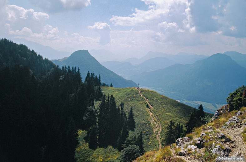 Blick vom Gipfelkamm auf den Samerberg. Foto: Gerhard Hirtlreiter, Rother Bergverlag