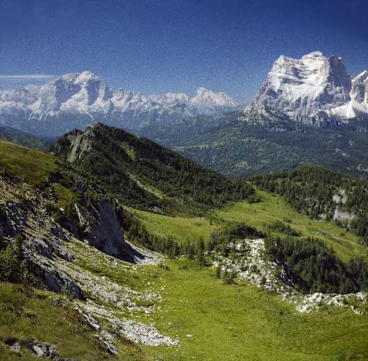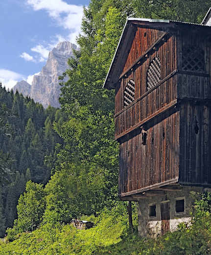 Zoppè di Cadore (1.460 m, begrenzter Parkraum), prachtvoll gelegenes Bergdorf am Südfuß des M. Pelmo. 9 km von Forno (Bus).