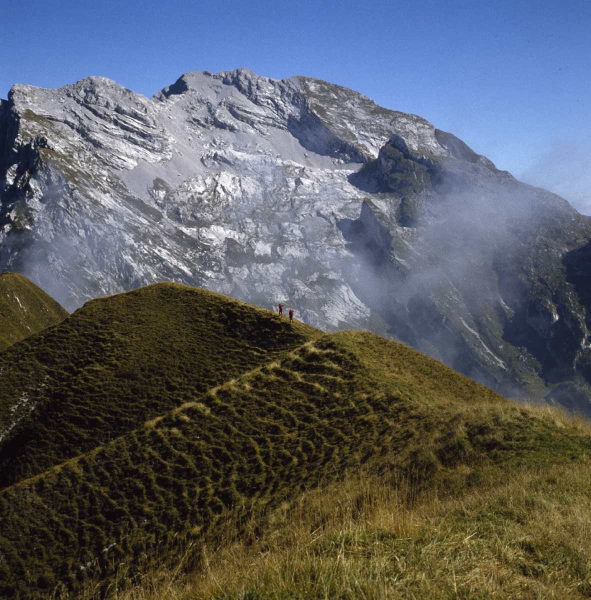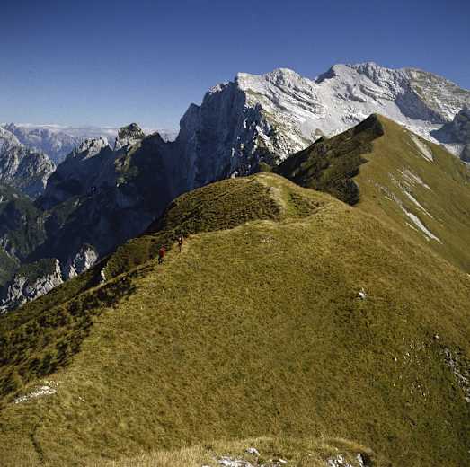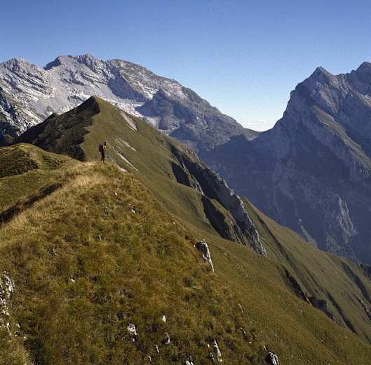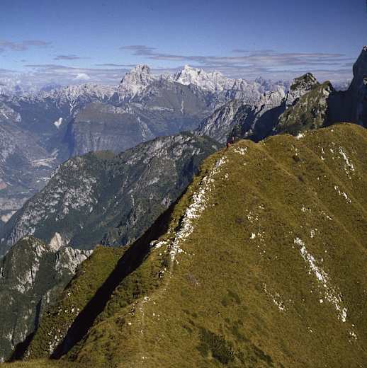 Schwereloser Wandelgang über Wolken, Täler und Menschen: Verglichen mit dem allgewaltigen Col Nudo ist der Col Mat (1.981 m) in den südlichen Dolomiten freilich nur ein Vorberg, eine „Miniatur“. Doch seine West-Ost-Überschreitung, entlang der schmalen Gratschneide mit übersteilen Grasflanken beiderseits, vermittelt einen superben Höhengang über dem Alpago und den Talschluchten des Piave und der Gallina.