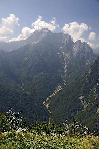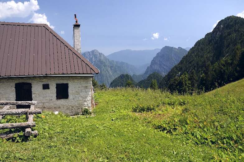 Nicht bis zur verfallenen Cas. Scalet Alta, sondern schon vorher das Tal auf unbez. Steig in steilen Kehren über Geröll (Abfahren möglich!) nach rechts hinab zur Cas. Scalet Bassa, 1.169 m. An der rechten Seite des Valle Stabali anfangs auf Karrenweg (Nr. 965), dann auf Naturstraße nach Süden abwärts zur Teilung an der Cas. Stabali, 1.049 m. Entlang der Straße südwestwärts in langer Hangquerung gerade fort nach Stàol di Plois.