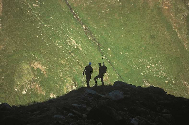Der Aufstieg durch das wildschöne Trettachtal macht allenfalls aufgekommene Langeweile im Nu wieder wett. Entlang fröhlich plätschernden Bächen steigen wir zum Hauptkamm hinauf, dem Etappenziel entgegen: Die Kemptner Hütte (1.846 m) wird eingerahmt von Krottenkopf und Mädelegabel.