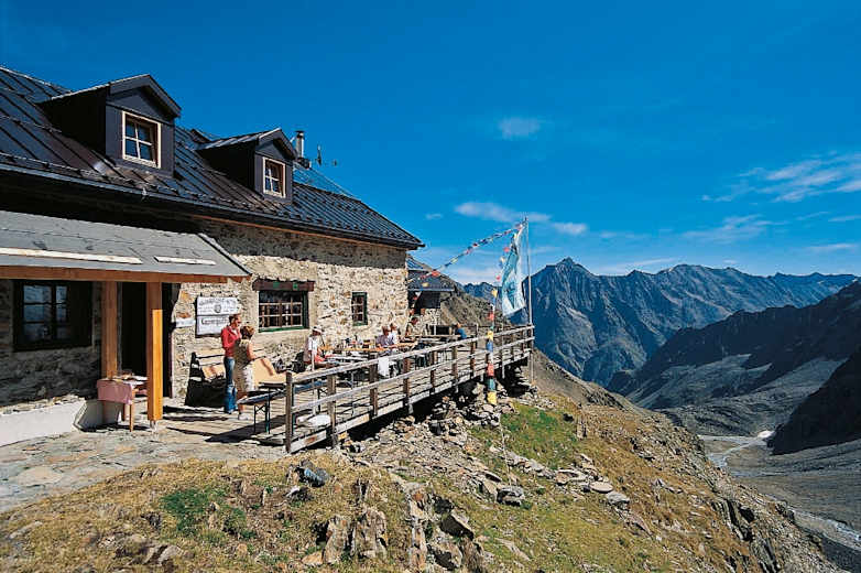 Die Verpeil- und Kaunergrathütte bieten sowohl Möglichkeit zur Einkehr als auch zum Übernachten.