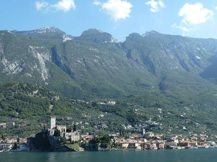 Gebührenpflichtiger Parkplatz an der Talstation der Monte-Baldo-Seilbahn (drehbare Panoramagondel ab der Mittelstation, Betrieb von Anfang April bis Allerheiligen) am Nordostende von Malcèsine; von der Gardesana orientale 200 Meter entfernt.