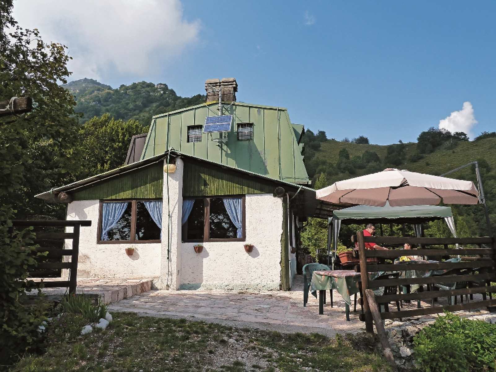Ein zusätzliches Plus auf dieser Tour ist das Rifugio Pirlo allo Spino, das für viele bereits ein eigenständiges Ziel darstellt, denn es ist eine der wenigen, voll bewirtschafteten Berghütten in den westlichen Gardaseebergen. Diese Unterkunftshütte des CAI Salo ist auch ein beliebter Anlaufpunkt für Mountainbiker, die allerdings von Gaino aus hoch strampeln, also nicht unseren Anstiegsweg berühren. Der Bau ist zwar gewöhnungsbedürftig, aber die Hüttenleute sind freundlich und das Essen recht gut.