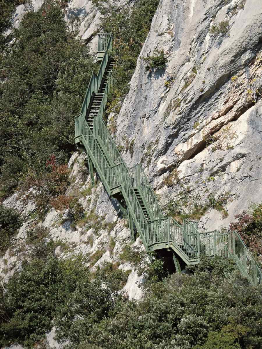 Gut gesicherter Treppenweg über den Ufern des Gardasees: Diese leichte, wunderschöne Wanderung wurde vor ein paar Jahren neu angelegt und ist zur Zeit das Wander-Highlight rund um Torbole. Der erste Teil führt über leichte Wanderwege in den Gardaseebergen, der mittlere Teil überwindet mittels dreier großartiger Treppenanlagen mit nahezu 400 Stufen die felsigen Steilabbrüche zum Ostufer des Gardasees in der Region Trentino-Südtirol.