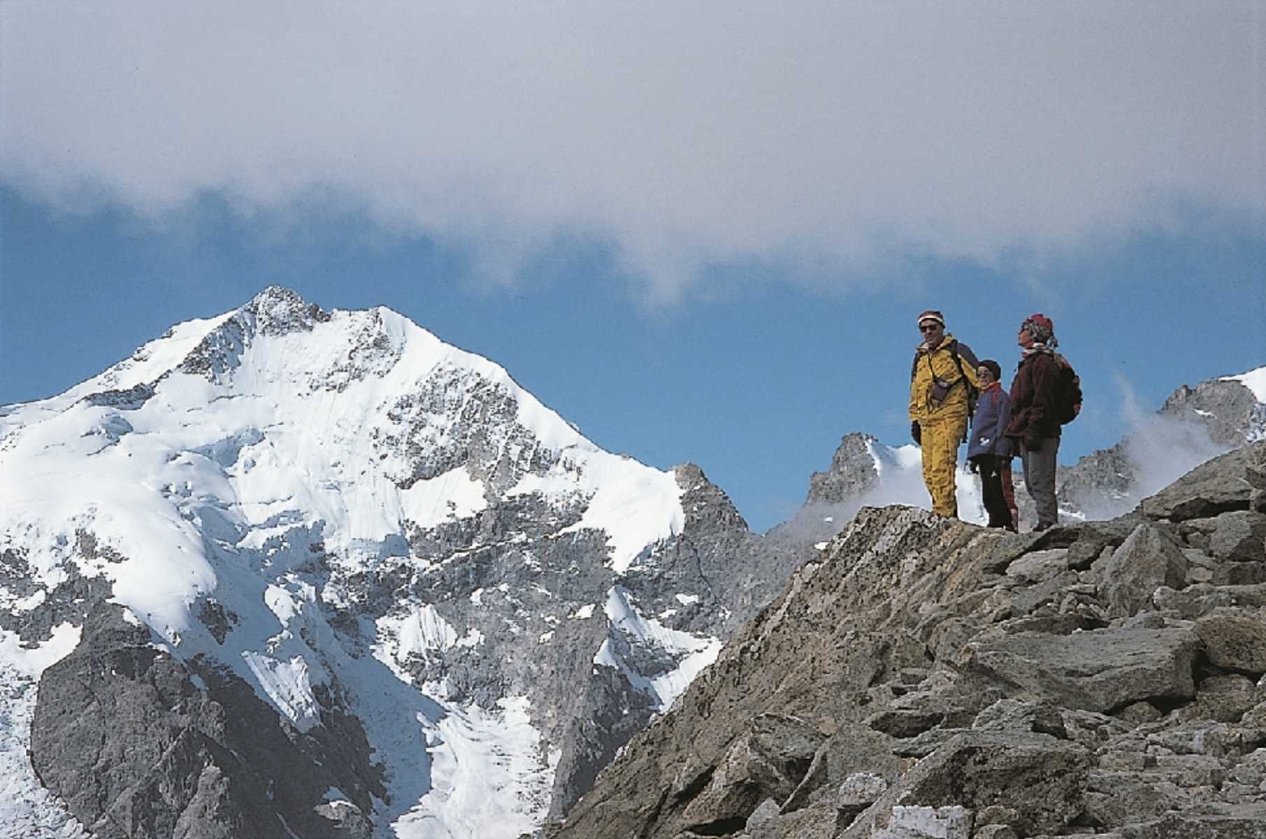Dank der Technik ist der Gipfel des Munt Pers (3.207 m) in der Bernina Gruppe im schweizerischen Engadin auch ein ideales Ziel für eine Wanderung mit Kindern, natürlich in Begleitung und Obhut bergerfahrener Eltern.