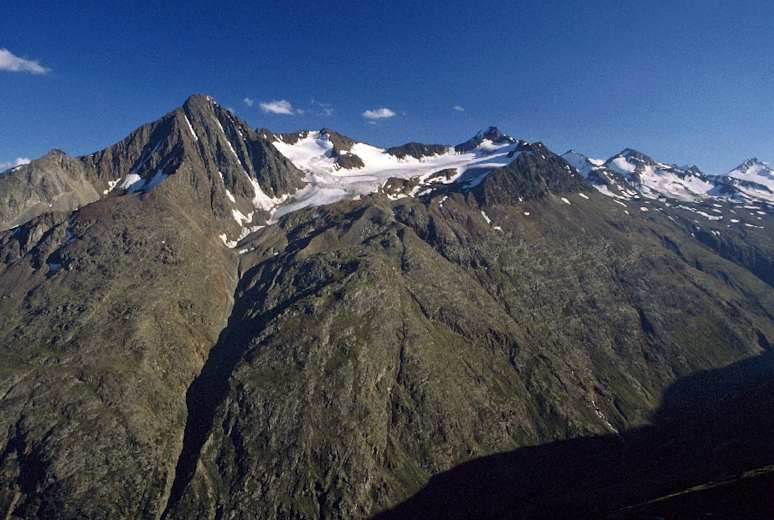 Vor allem die Gipfel des Kreuzkammes präsentieren sich sehr schön aufgereiht. Verblüffend ist der Moment, wenn wir in den Vernagtkessel einschwenken.