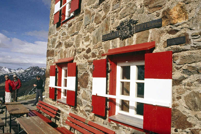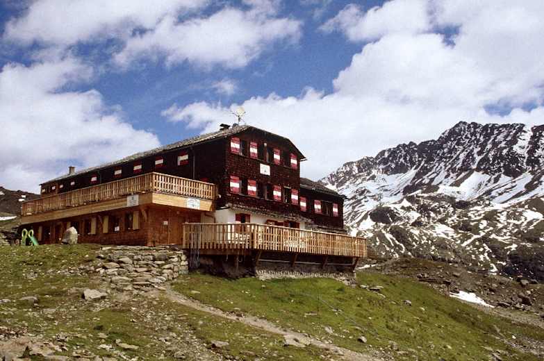Von Vent zunächst mit dem Wildspitzlift oder – wer früh aufbrechen möchte – in 1,15 Std. über die weit ausholenden Schleifen am südostseitigen Troghang hinauf zur Bergstation Stablein, 2.356 m. Von dieser Hangverflachung weiter auf komfortabel ausgetretener Trasse durch blockbesetzte Matten bergwärts. Nach einem Abzweig zum Wilden Mannle geht es links haltend über den Rofenkarbach und in Serpentinen bis zur stattlichen Breslauer Hütte, 2.844 m, empor.