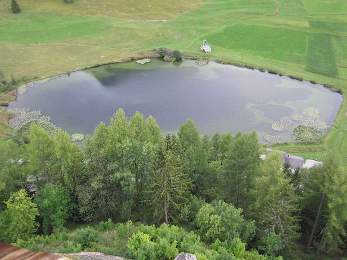 Unsere Wanderung endet auf der Hochfläche von Tarasp mit dem gleichnamigen See und dem berühmten Schloss, genauer aber im Ortsteil Fontana (sehenswerte Kirche, zahlreiche schöne alte Häuser, Post-Auto-Haltestelle)