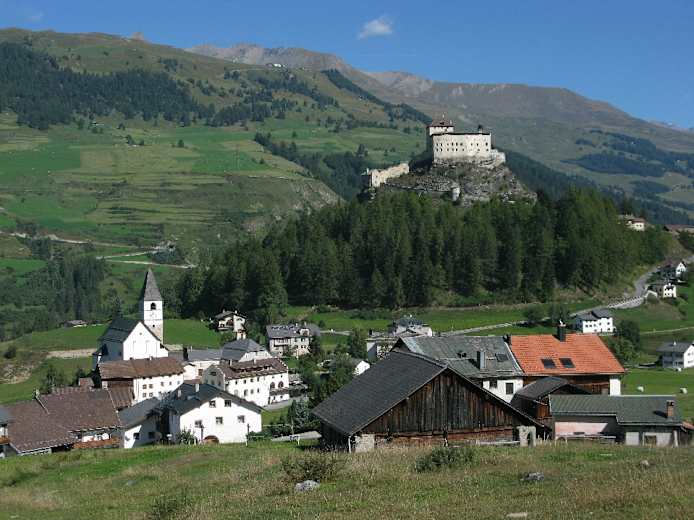 Beim Rückweg lohnt es sich, dem eindrucksvollen Schloss Tarasp einen Besuch abzustatten (Besichtigung nur im Rahmen einer Führung).