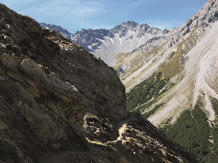 Durch das Plavnatal zum Schloss Tarasp: Die Wanderung im schweizerischen Kanton Graubünden führt beim Anstieg zum Sattel Sur il Foss (2.317 m) in der Sesvennagruppe zunächst durch den Schweizer Nationalpark. Der Abstiegsweg liegt nicht mehr im Nationalpark, doch ist die Val Plavna landschaftlich kaum weniger eindrucksvoll.