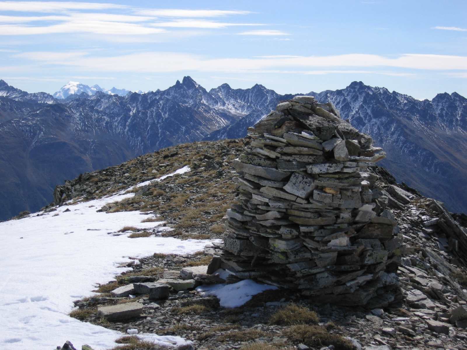 Nach links und in einer zunehmend steilen Mulde in die Fuorcla da Glims. Auf Steigspuren durch Blöcke auf den Gipfel des Piz Glims. Herrliche Aussicht!